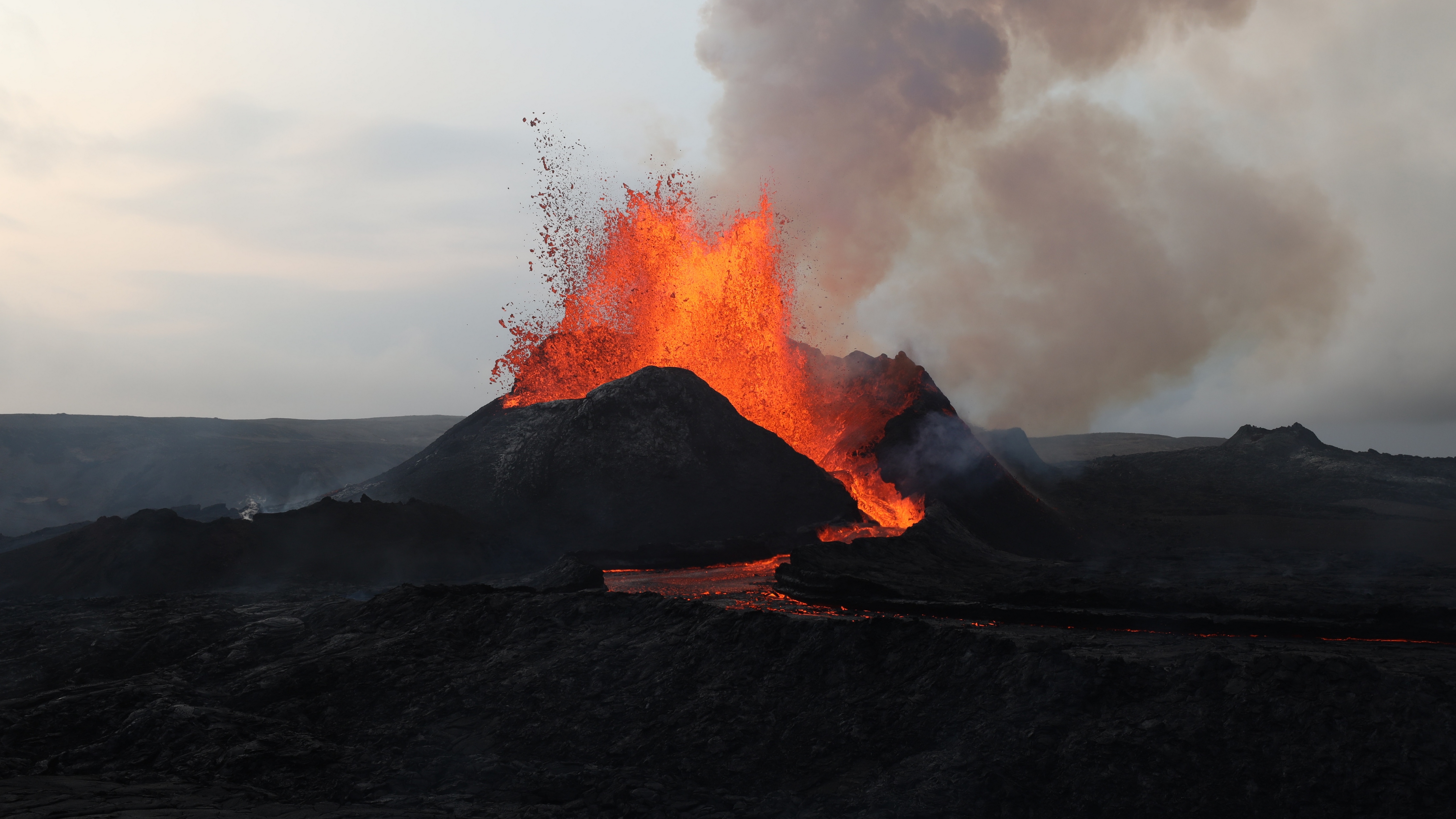 Description: A large plume of lava is rising from a mountain of lavas and lavas in the sky.