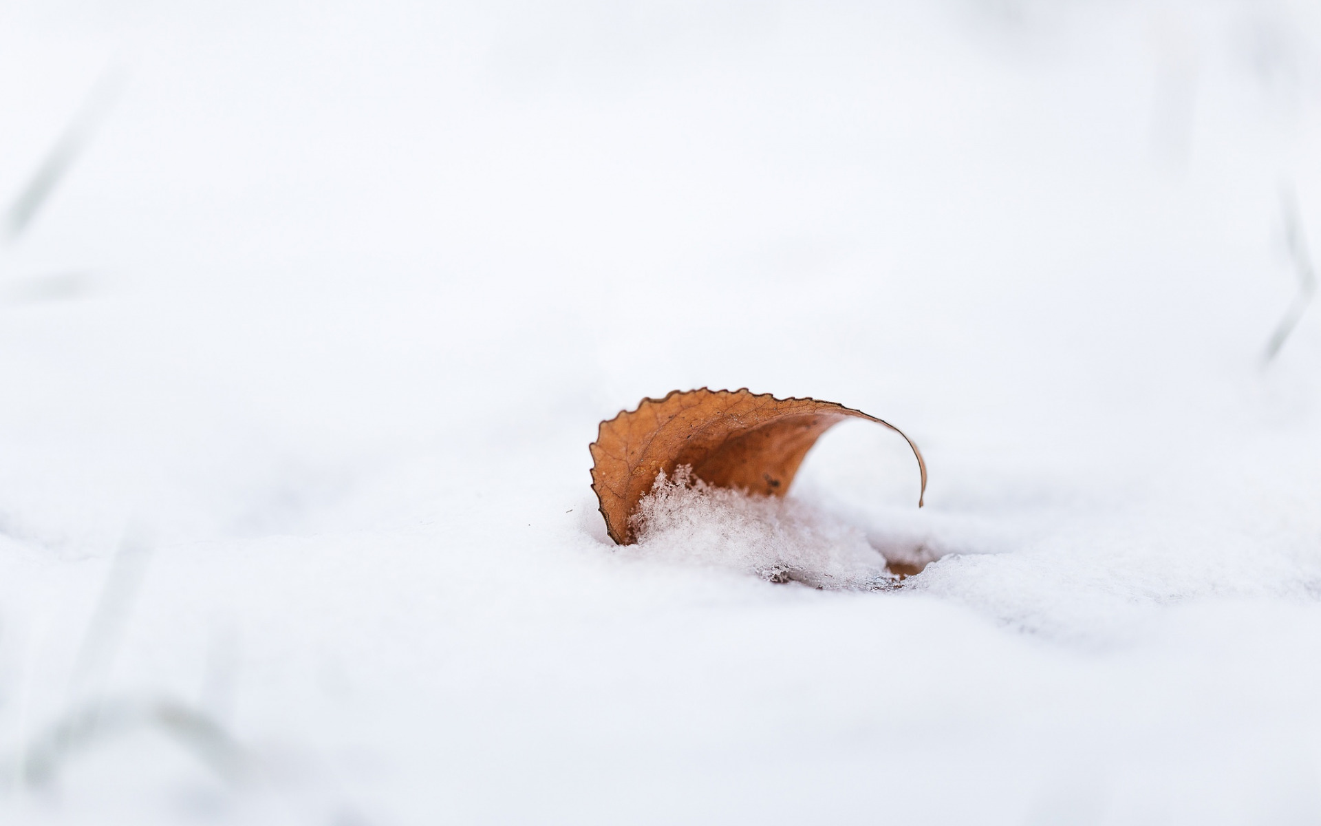 Description: A leaf is stuck in the snow on a sunny day.