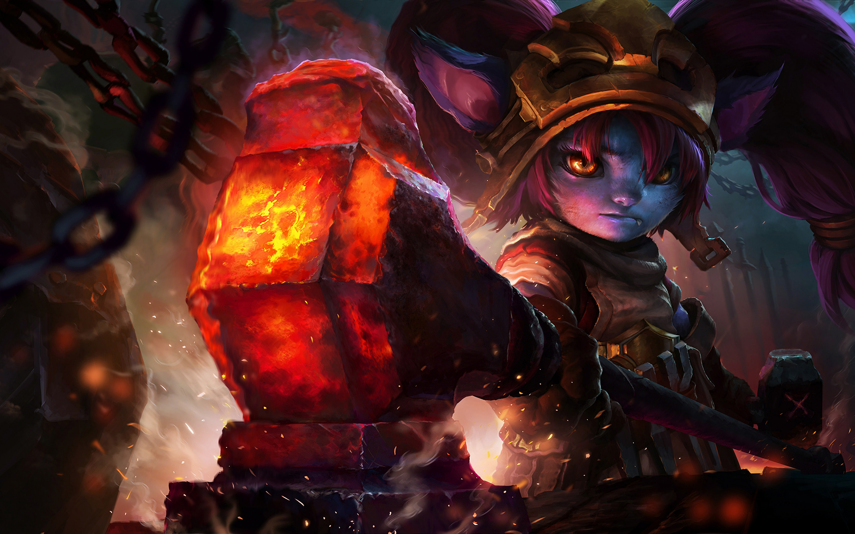 Description: A character from league of lol holding a glowing item in her hand and a glowing object in her hand.