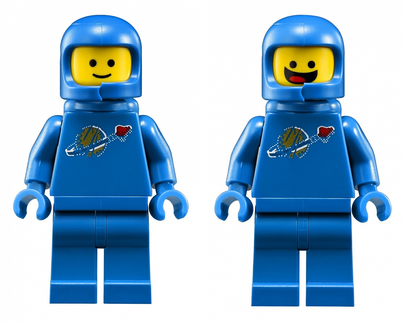 Description: A lego figure with a blue helmet and a red heart on it's chest and a blue jacket on his head.