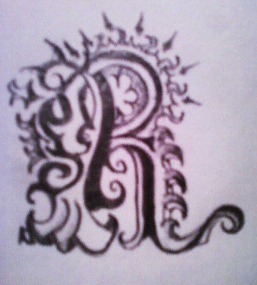 Description: A drawing of a letter with a crown on top of it and a bird flying around it.
