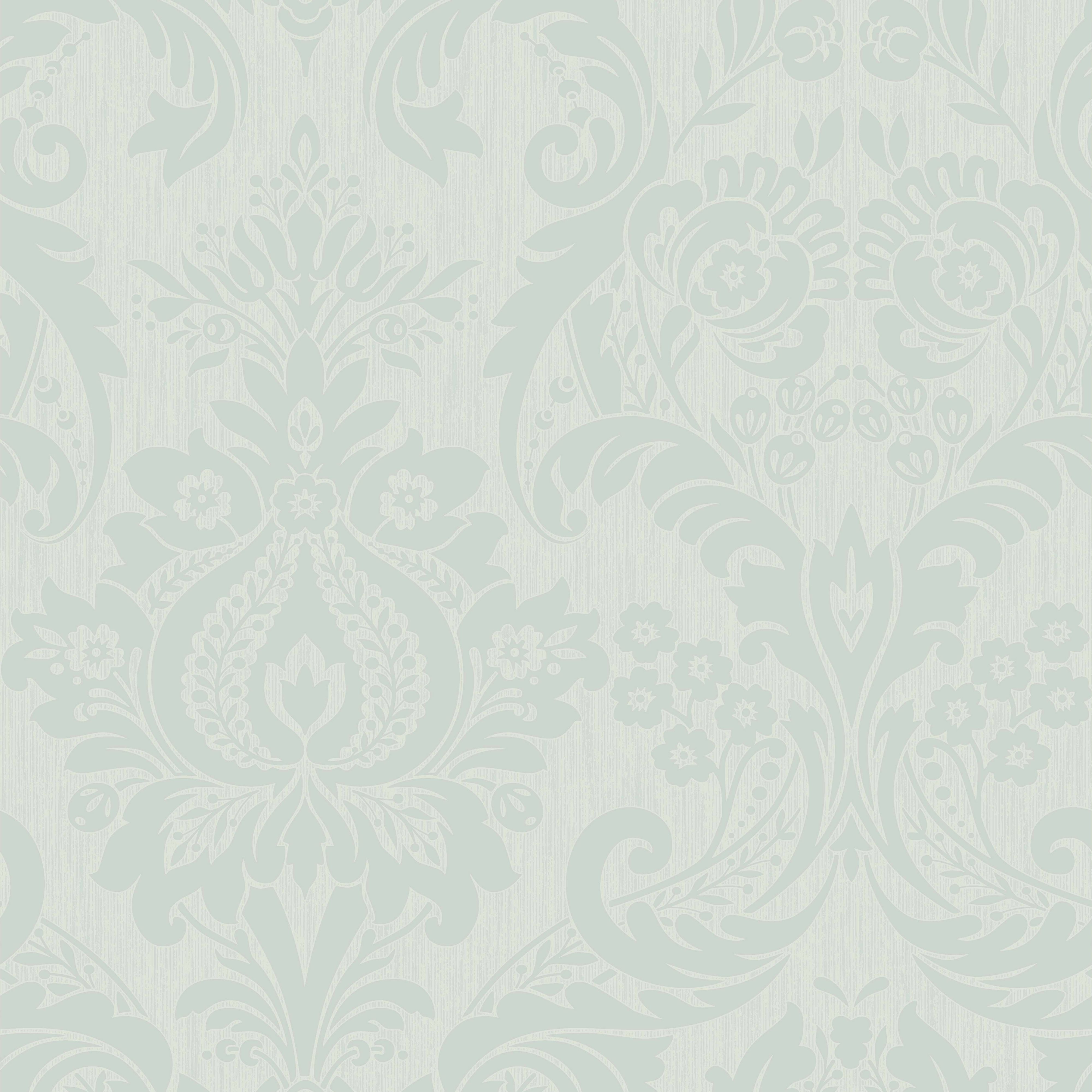 Description: A light blue wallpaper with a floral design on it's side and a white background with a light blue flower.