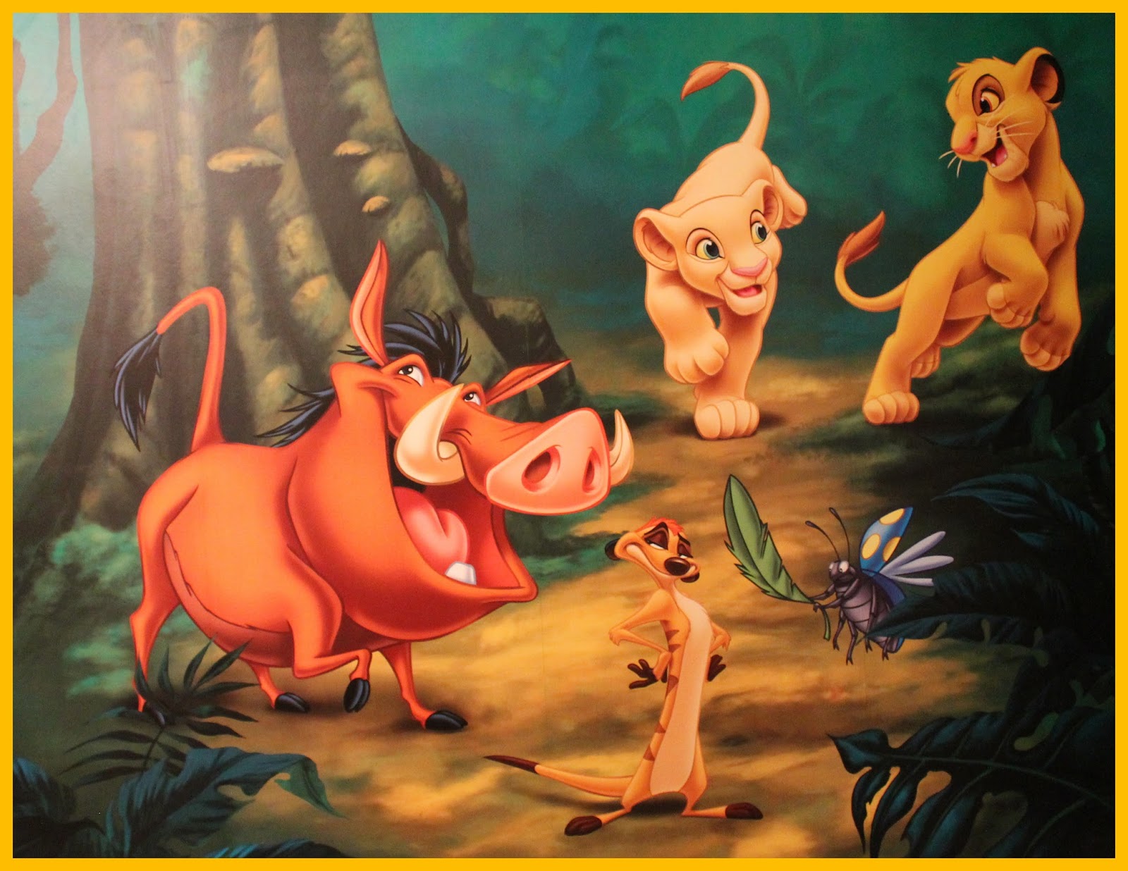 Description: A painting of a lion and other animals in a jungle scene with a butterfly and a bug in the foreground.