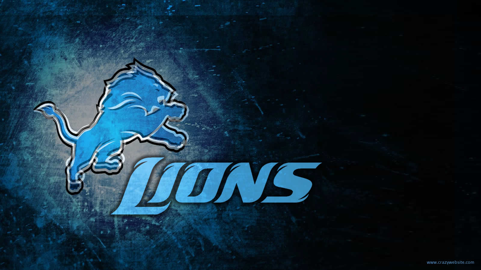 Description: A detroit lions logo on a dark background with the word lions in the center of the image and a blue lions logo on the bottom.