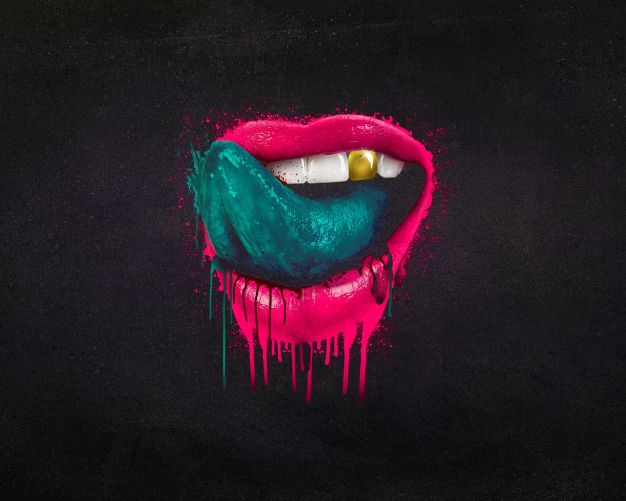 Description: A painting of a lipstick with a cigarette sticking out of it's mouth and dripping paint on the lips.