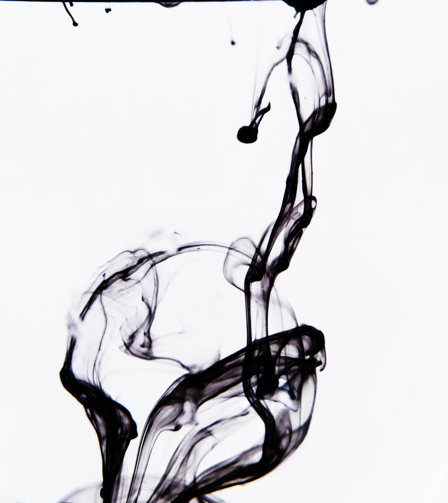 Description: A liquid is being poured into a glass of water with a spoon in it and a black substance in the bottom.