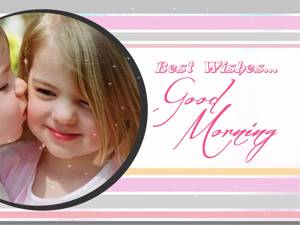 Description: A picture of two little girls kissing each other with the words best wishes good morning on the picture and the words best wishes.
