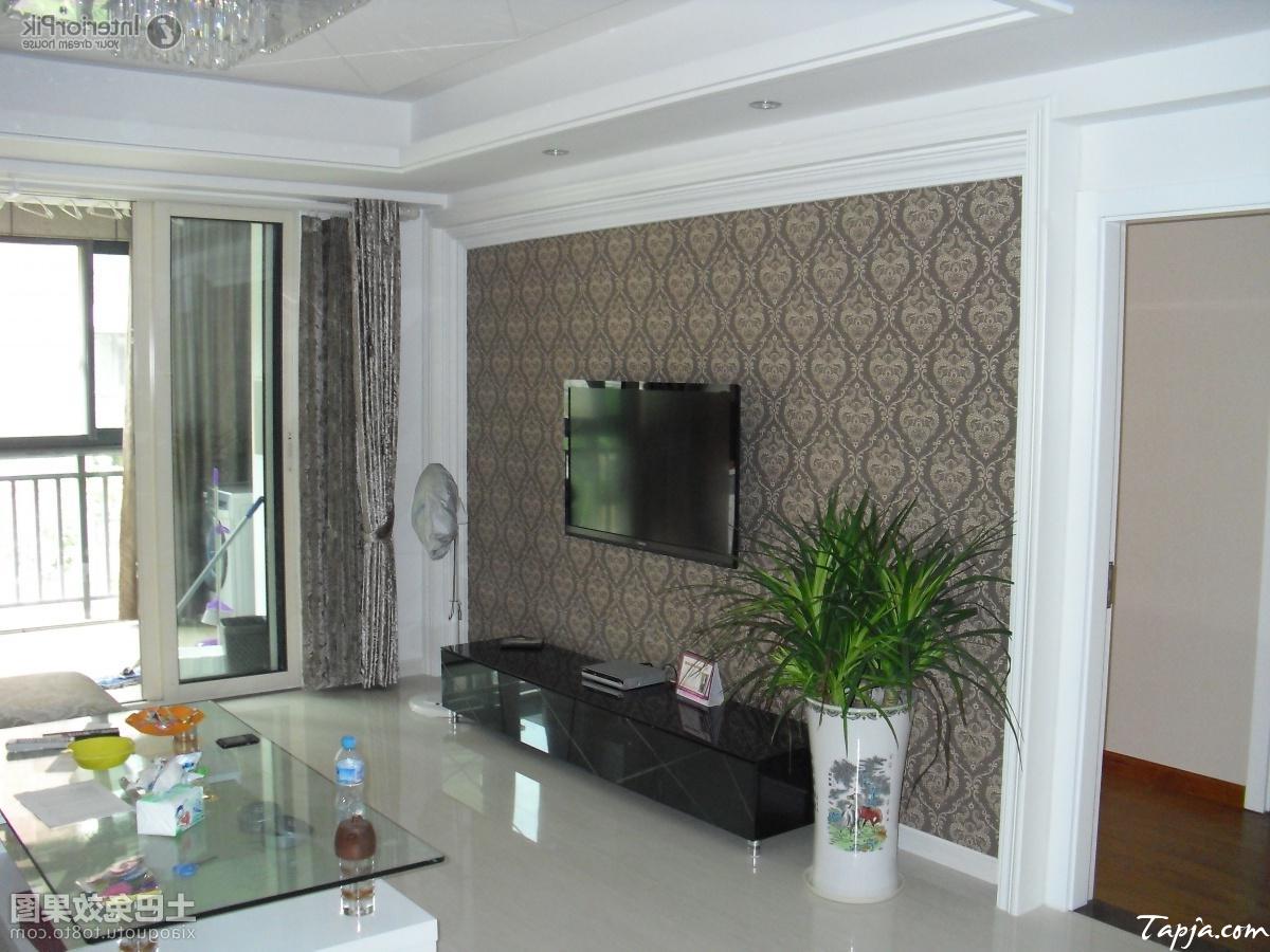 Description: A living room with a large flat screen tv and a plant in a vase on the table in front of the tv.