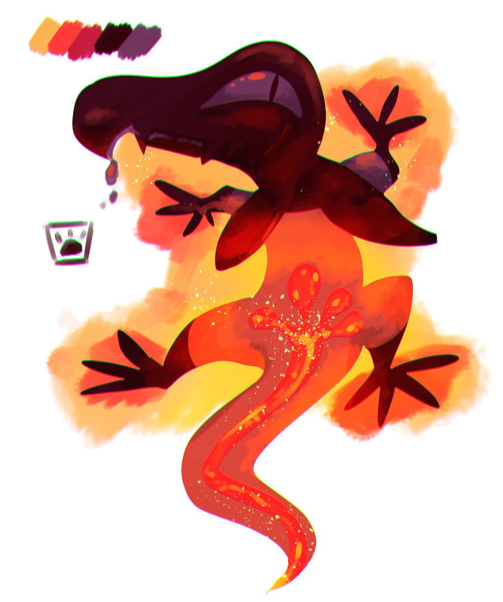 Description: A drawing of a lizard with a hat on its head and a cup in the background with a light.