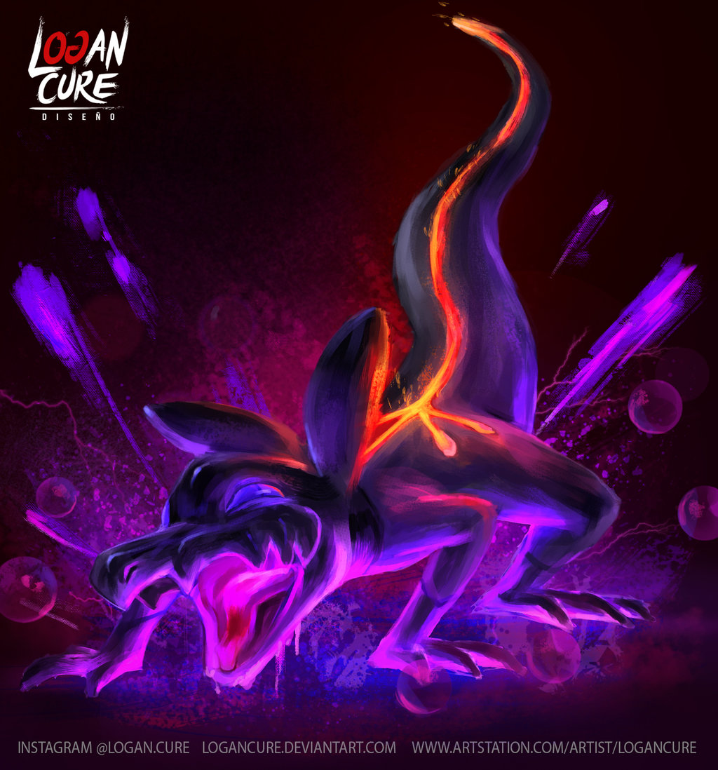 Description: A digital painting of a lizard with a purple background and a red and orange glow on it's back.