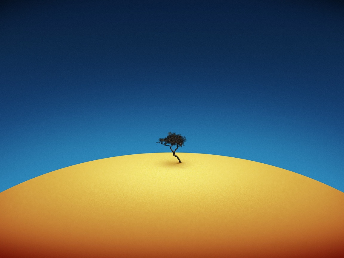Description: A lone tree on a hill with a blue sky in the background and a yellow and orange color scheme.