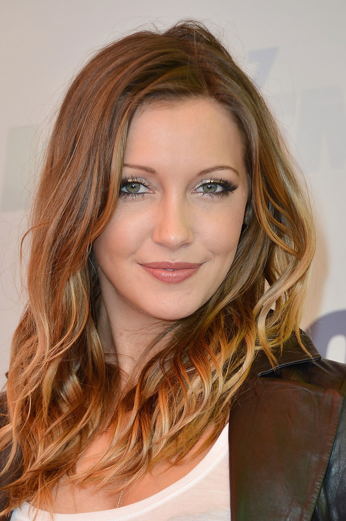 Description: A woman with long hair and a leather jacket on a red carpet with a white wall behind her and a white wall behind her.