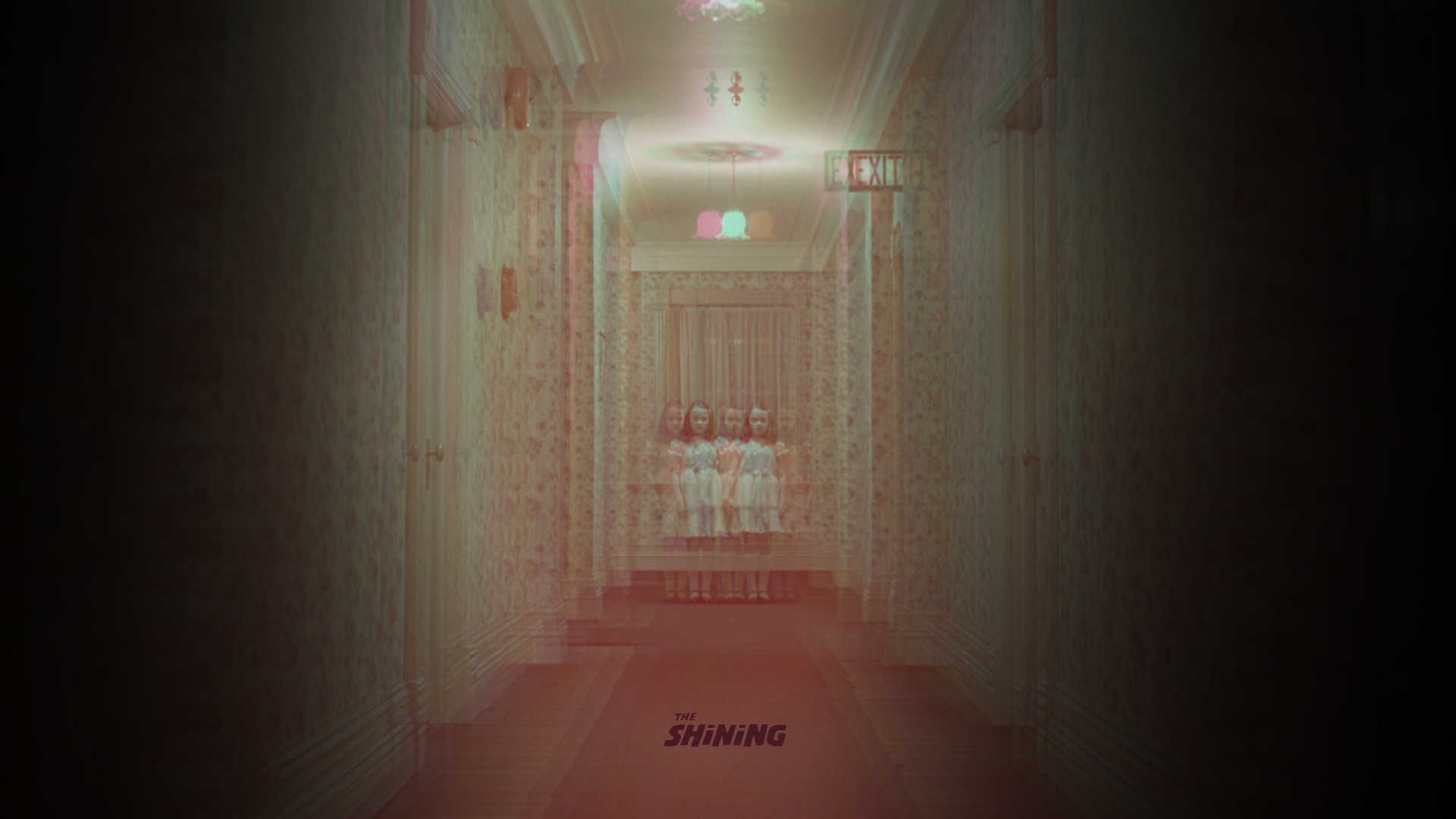 Description: A long hallway with a red carpet and a red light at the end of the hallway is a red light.