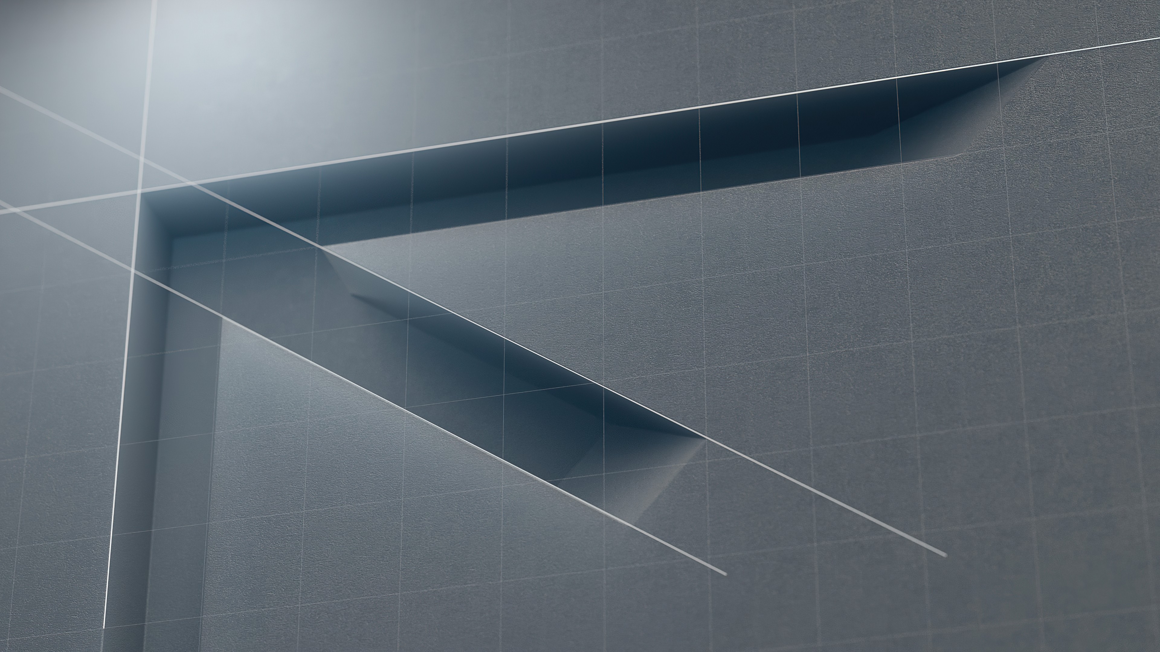 Description: A very long thin object on a wall with a light shining on it's side and a shadow on the wall.
