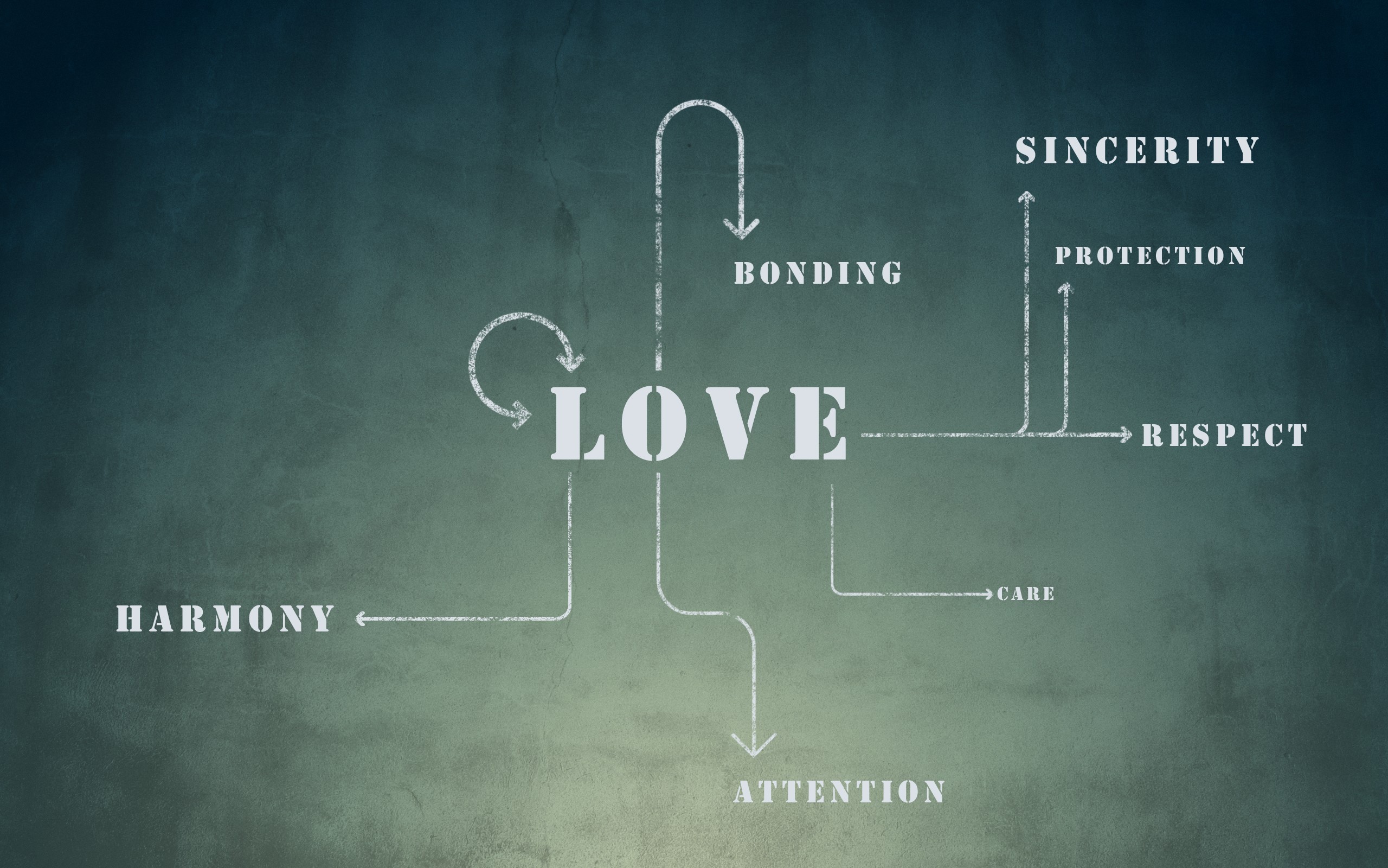 Description: A diagram of love and affection on a wall with words written in it and a person holding a camera.