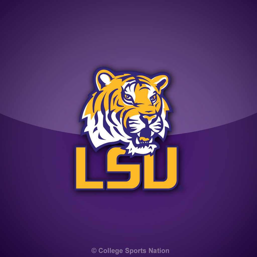Description: A lsu logo on a purple background with a tiger on it's head and the word lsu on the front.