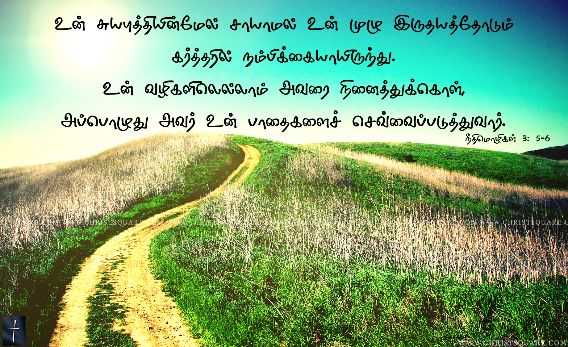 Description: A road going through a lush green field with a quote written in the middle of it on the side.
