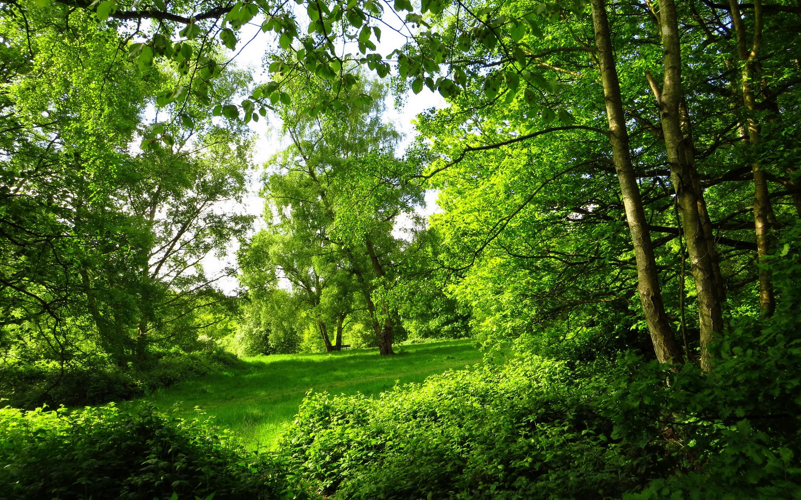 Description: A lush green forest filled with lots of trees and bushes next to a lush green field with lots of trees.