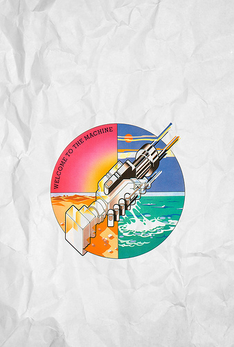 Description: A drawing of a machine gun on a piece of paper with a rainbow background and the words.