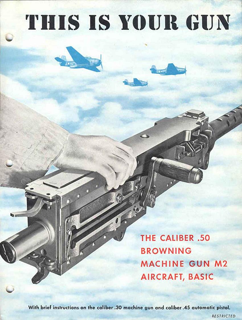 Description: A poster of a machine gun with a hand holding it with a plane in the background and a plane in the sky.