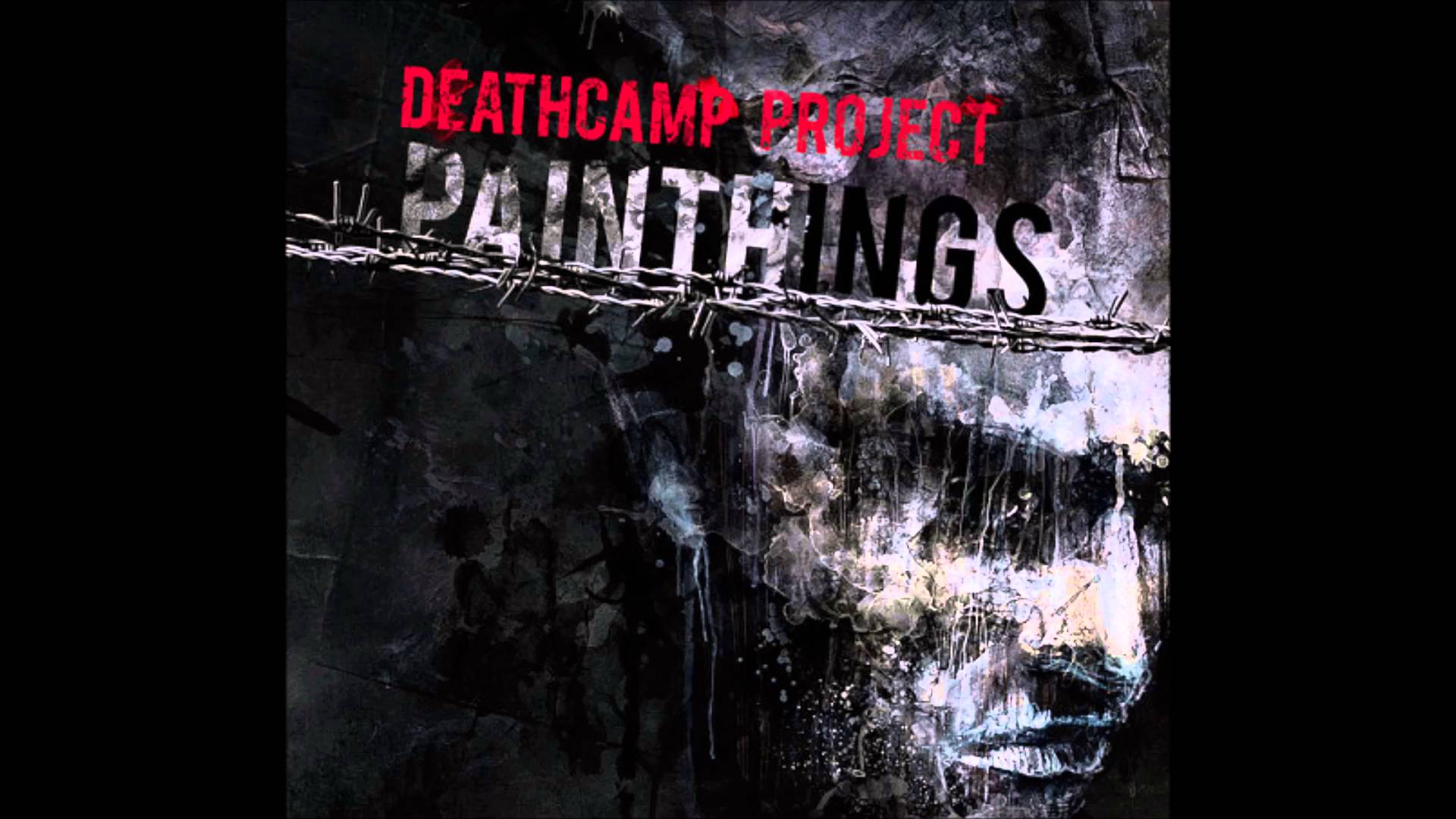 Description: A poster of a man's face with barbed wire on it and the words death camp project on it.