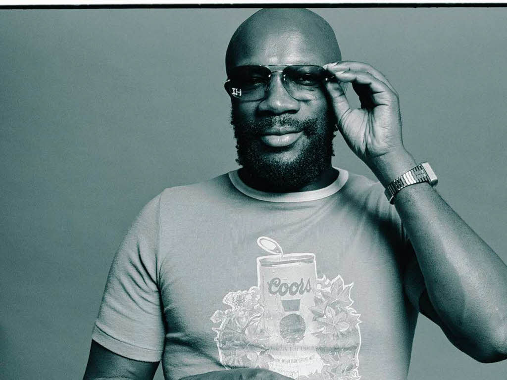 Description: A man with a beard and glasses holding a drink in his hand and looking at the camera with a smile.