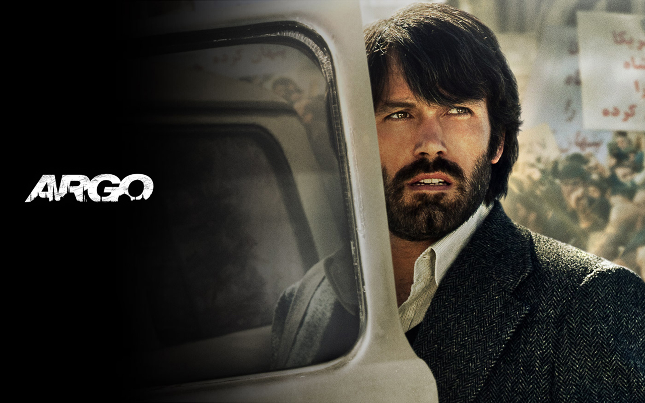 Description: A man with a beard and a mustache is holding a tv in front of a crowd of people with signs.