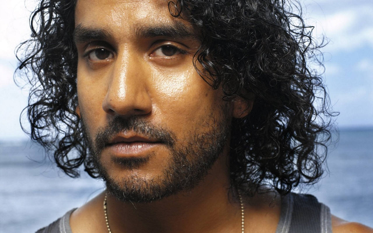 Description: A man with a beard and a necklace on his neck looking at the camera with a blue sky and ocean in the background.