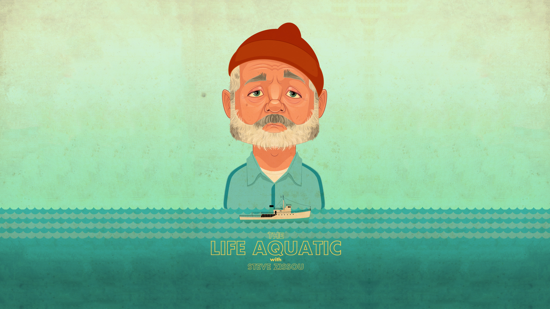 Description: A man with a beard and a red hat is looking at a cigarette in the water with a caption that reads life aquatic.