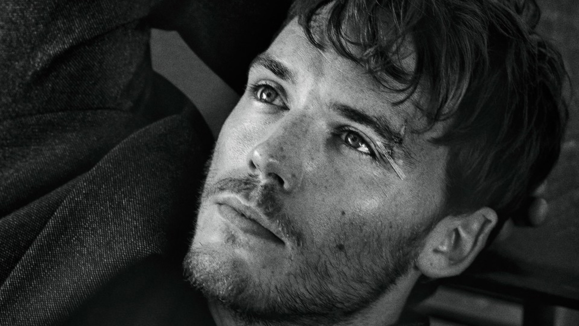 Description: A man with a beard and a suit on laying down with his head on his arm and his eyes closed.