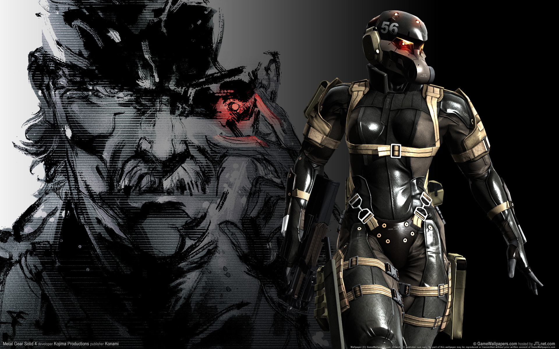 Description: A man in a black and gold suit and helmet standing next to a black and white background with a red demon.