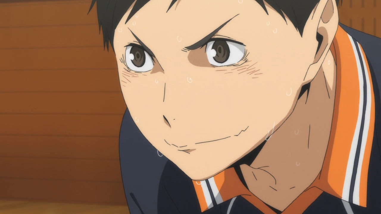 Description: A man with a black hair and a blue shirt and orange and white striped shirt and a black and white striped shirt.
