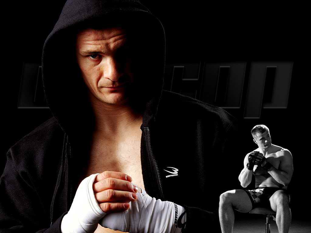 Description: A man in a black hoodie and boxing gloves sitting in a chair with a boxing glove in his hand.