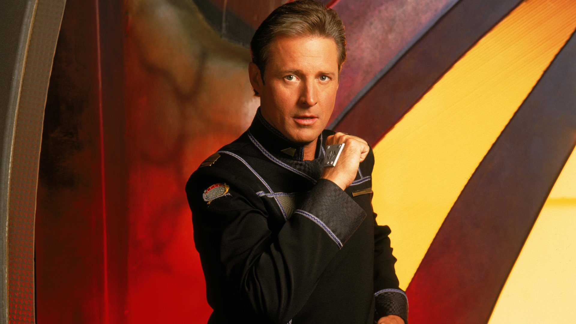 Description: A man in a black jacket is holding a cell phone in his hand and posing for a picture in front of a colorful wall.