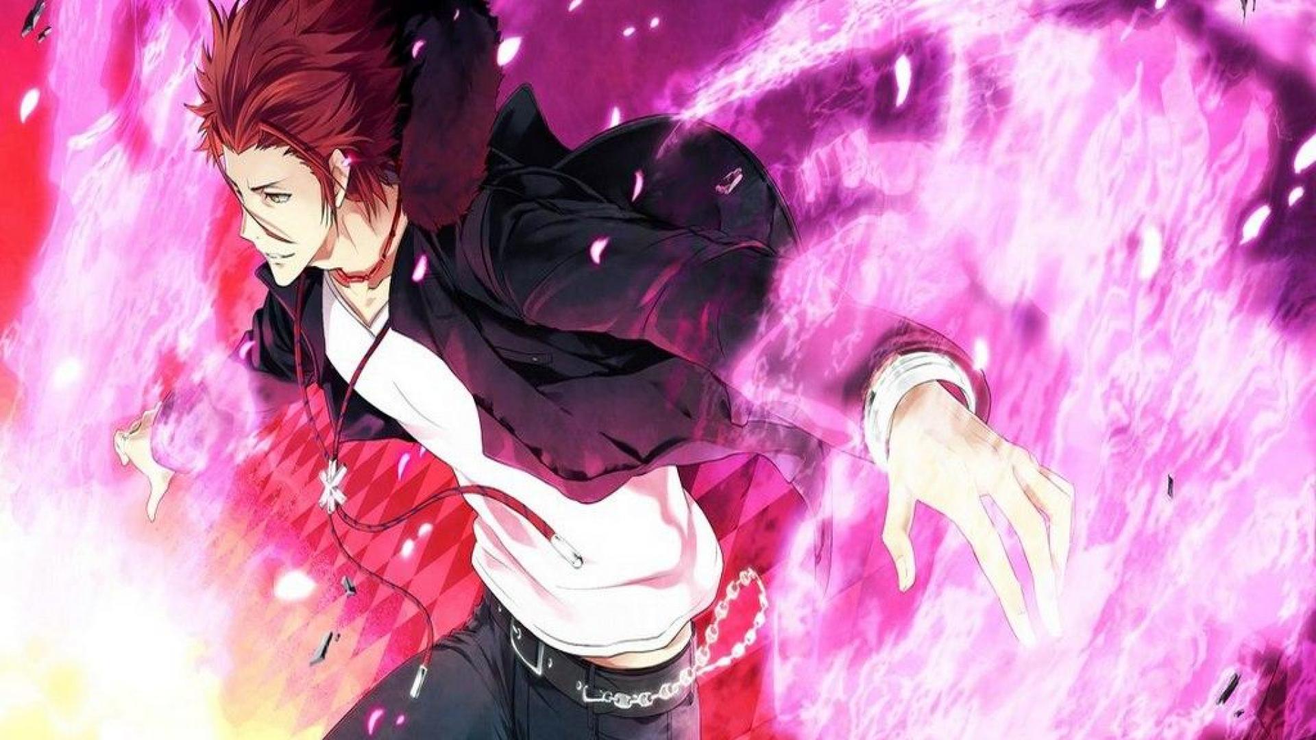 Description: A man in a black jacket and white shirt with a pink background and a pink and purple background with a red and yellow flame.
