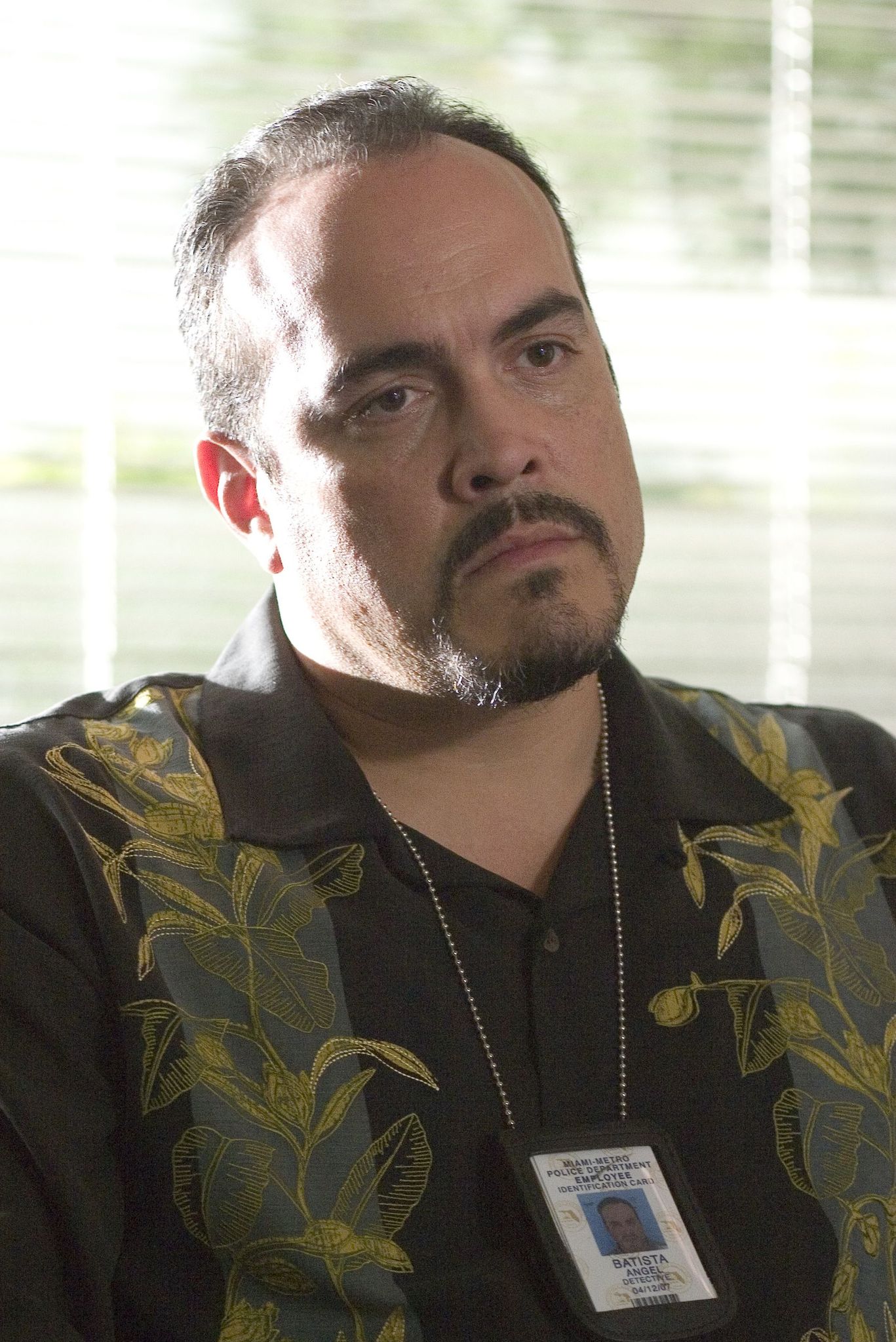 Description: A man with a black shirt and a flowered shirt on is staring at the camera with a serious look on his face.
