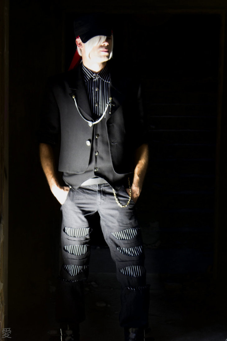 Description: A man in a black shirt and jeans standing in a doorway with his hands in his pockets and a hat on his head.