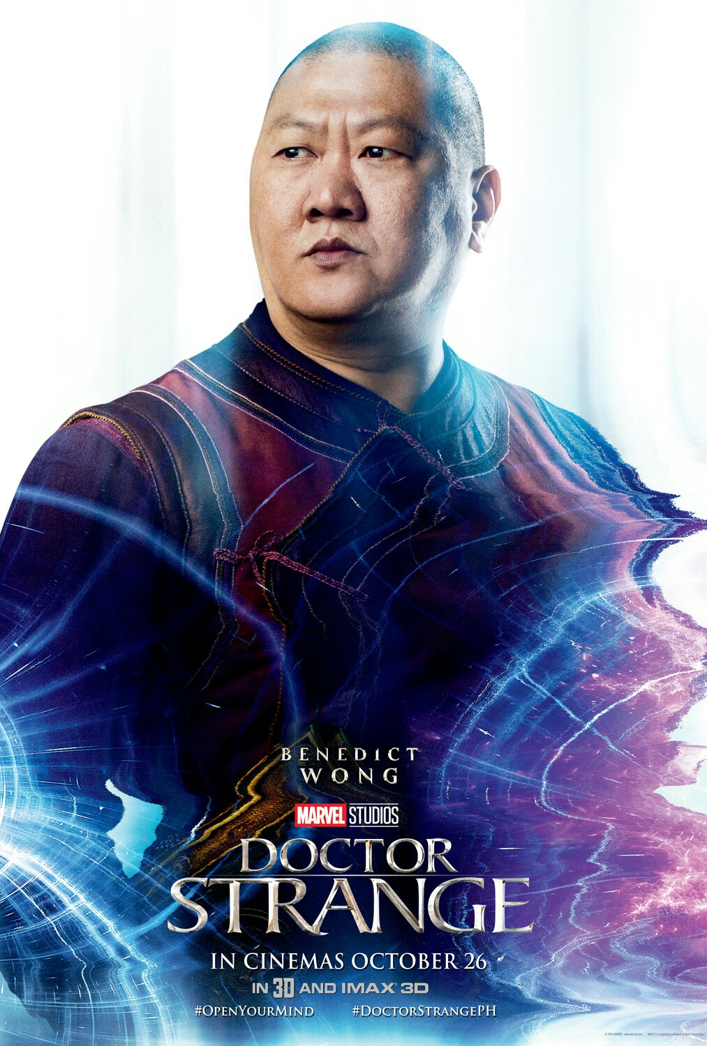 Description: A man in a black shirt and a purple background with a doctor strange character on it's chest.