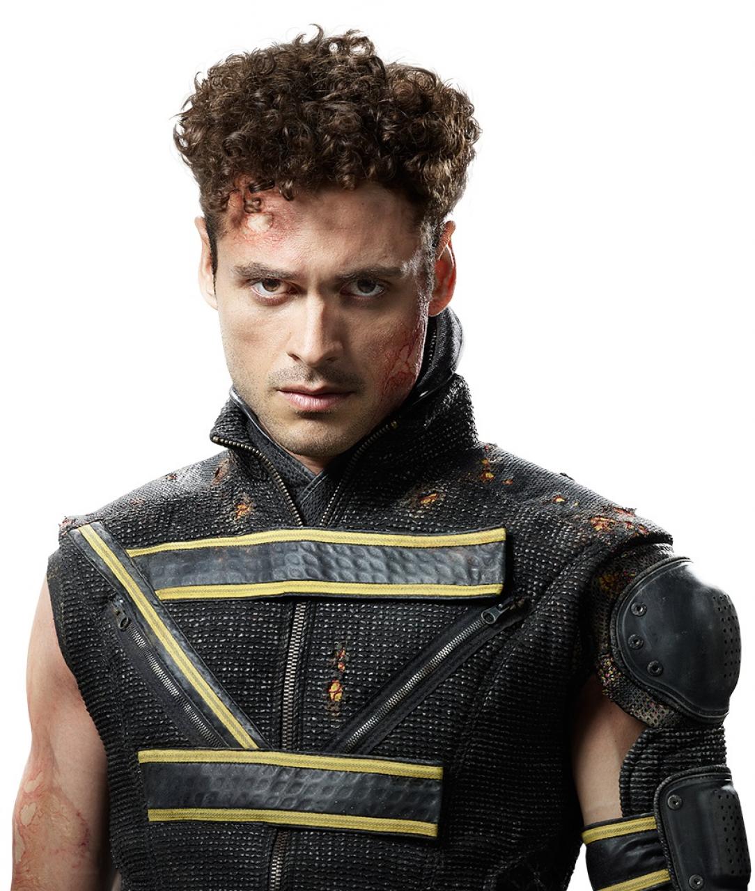 Description: A man in a black suit with a yellow stripe on his chest and a black helmet on his head.