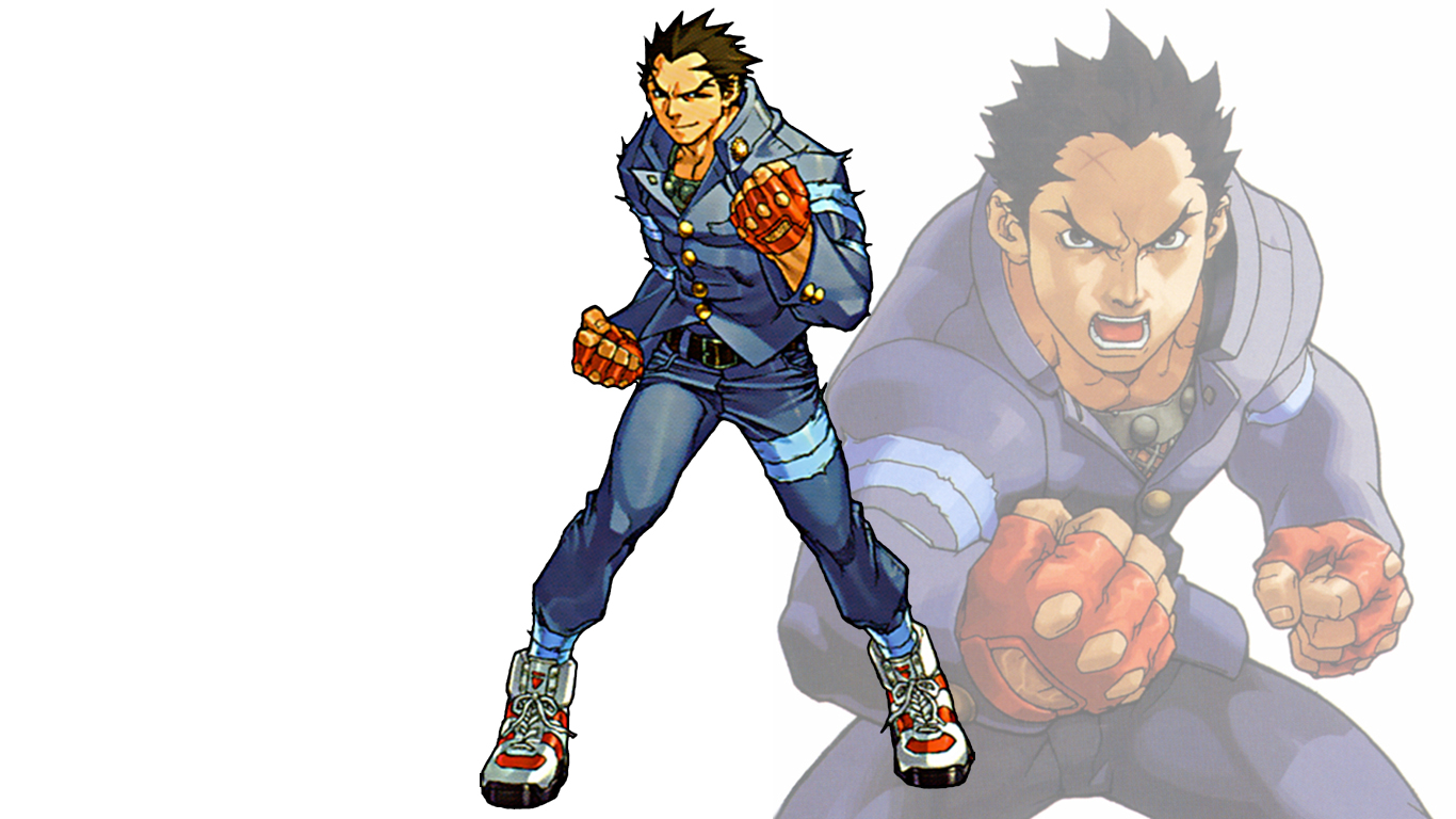Description: A man in a blue suit and a man in a red shirt are fighting with each other in a cartoon.