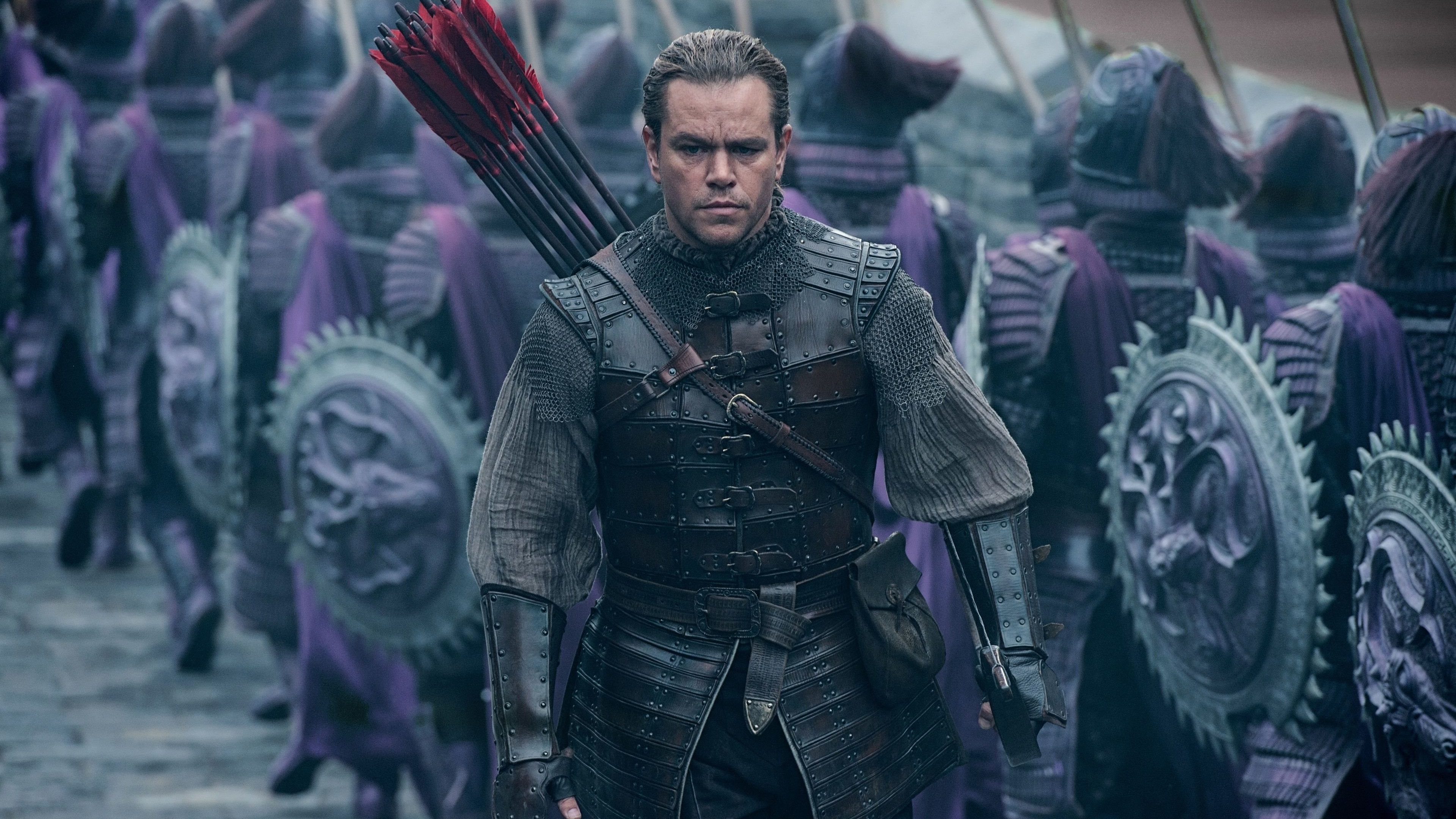 Description: A man in a costume with a bow and arrows in his hand and a group of other men in armor behind him.