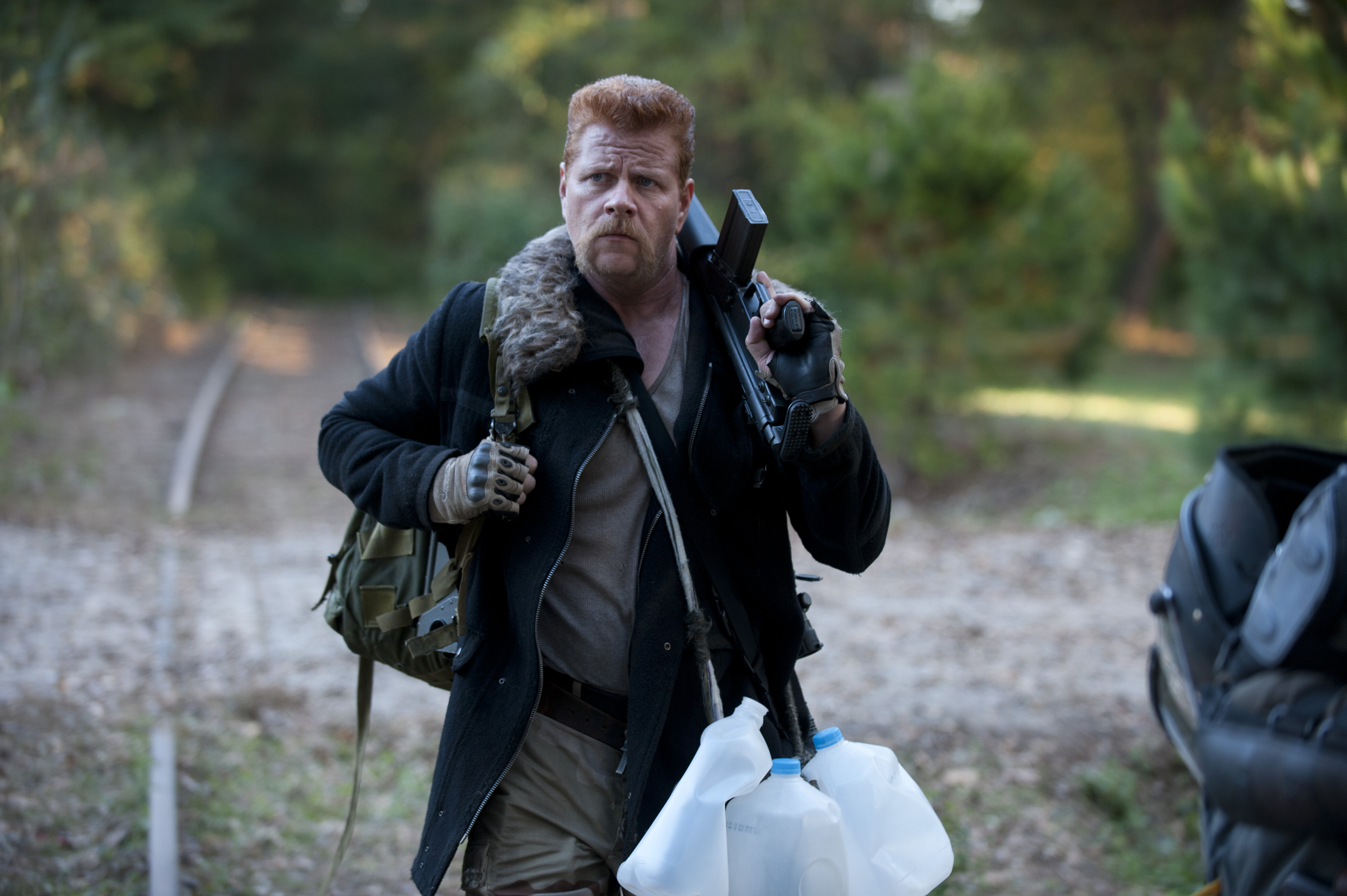 Description: A man with a camera and a bag walking down a road with a backpack on his shoulder and a camera in his hand.