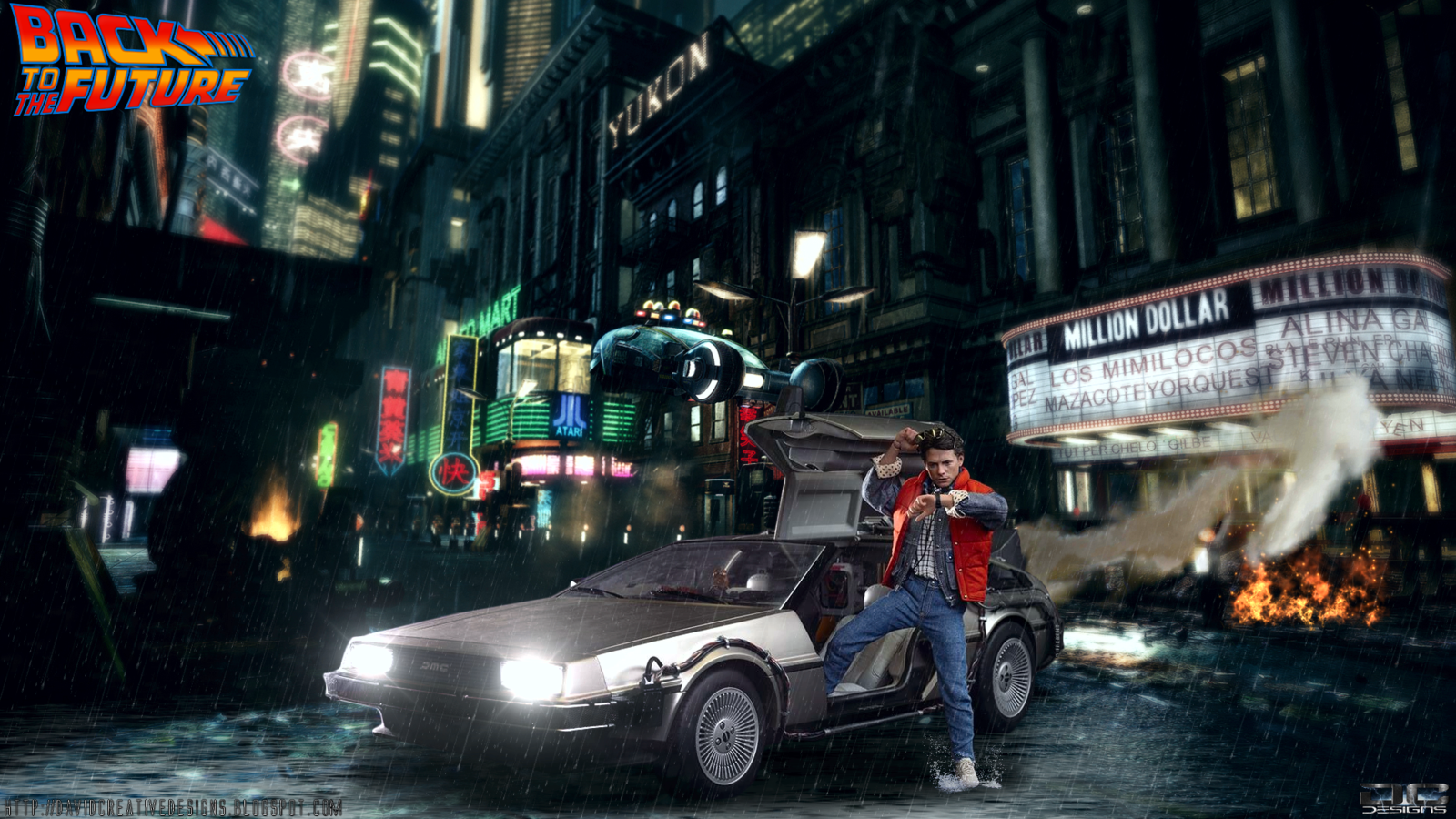 Description: A man standing next to a car in a city at night with neon signs and buildings in the background.