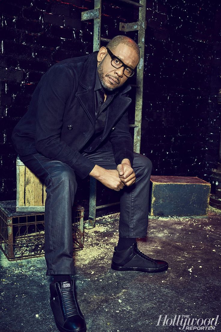 Description: A man sitting on a chair in a room with a ladder and a wall behind him.