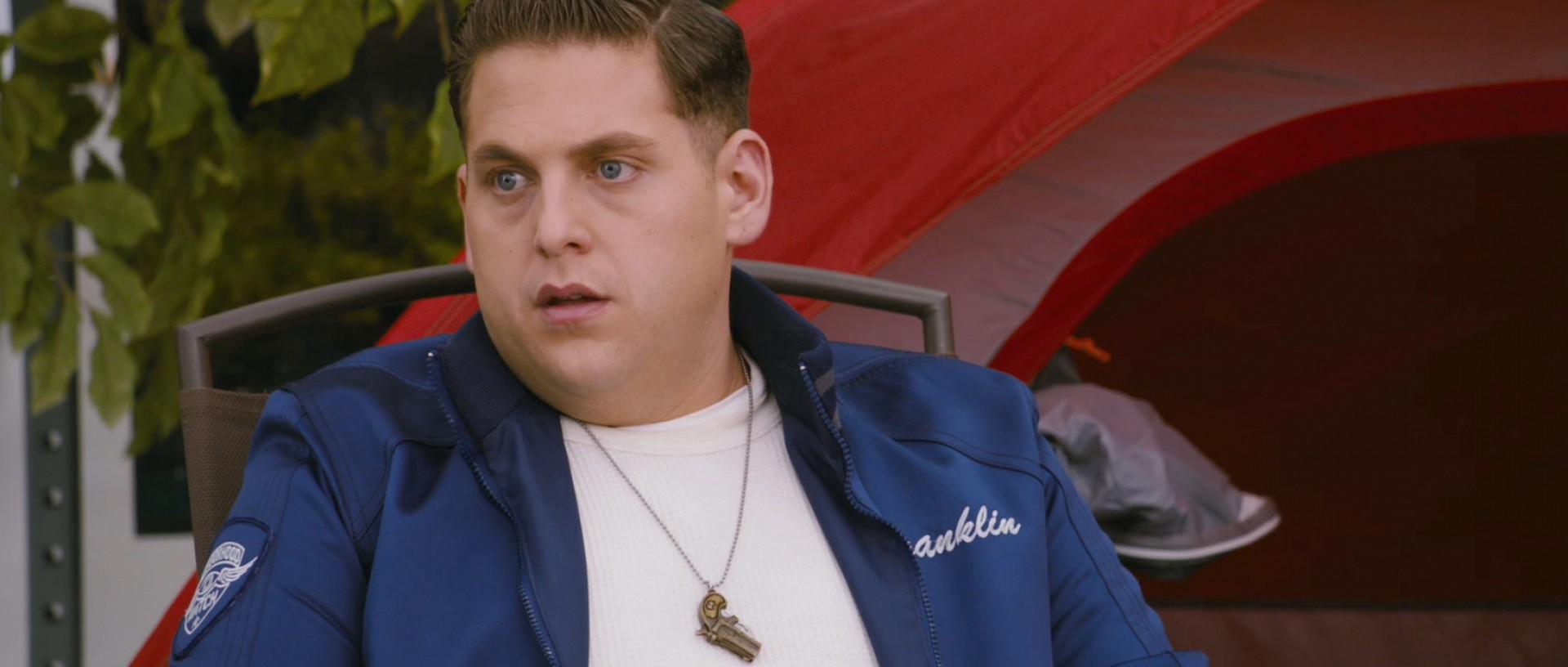 Description: A man sitting in a chair with a necklace on his neck and a red tent behind him with a tree.