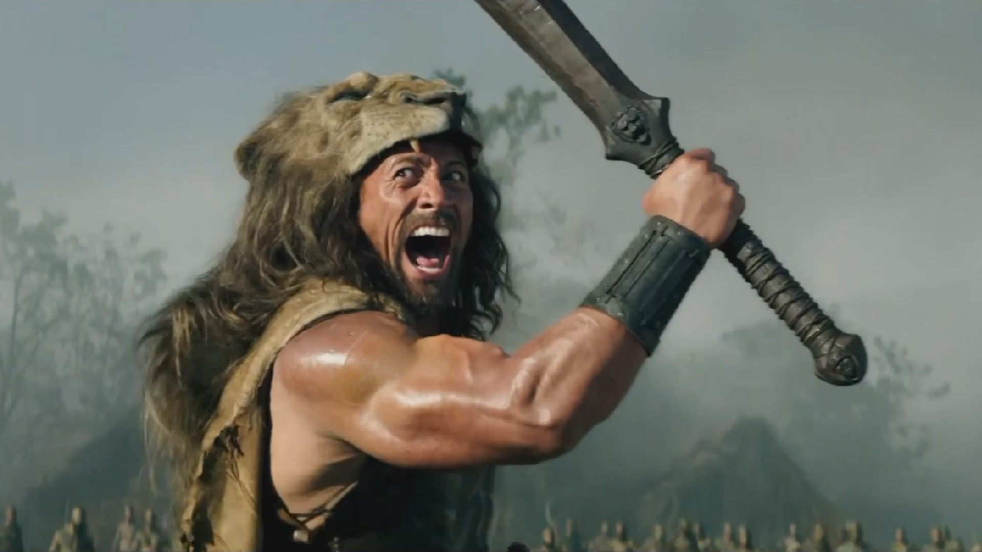 Description: A man in a costume holding a large sword in front of a crowd of people in a forest with trees.
