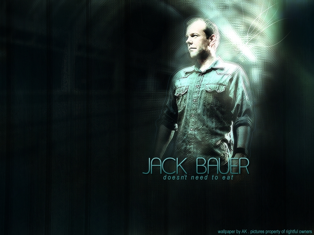 Description: A man standing in a dark room with a name on it that says jack bauer doesn't need to wait.