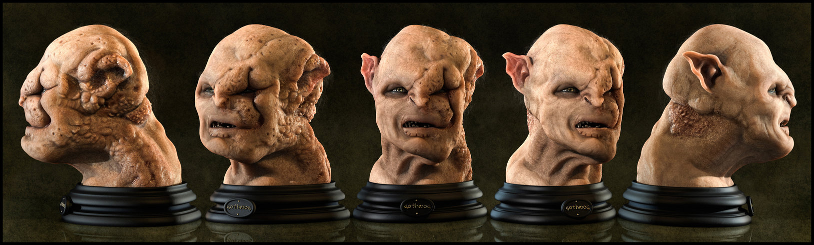 Description: A series of five images of a man's head with multiple expressions and hair.