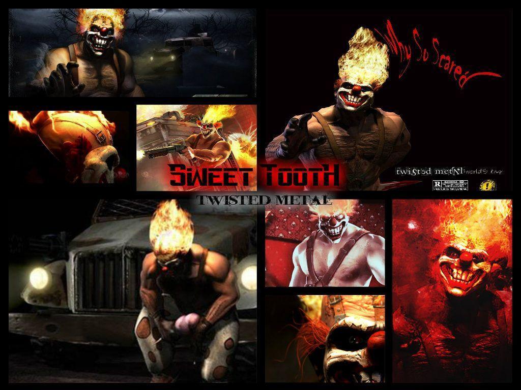Description: A collage of images of a man with a fire face and a gun in his hand and a truck in the background.