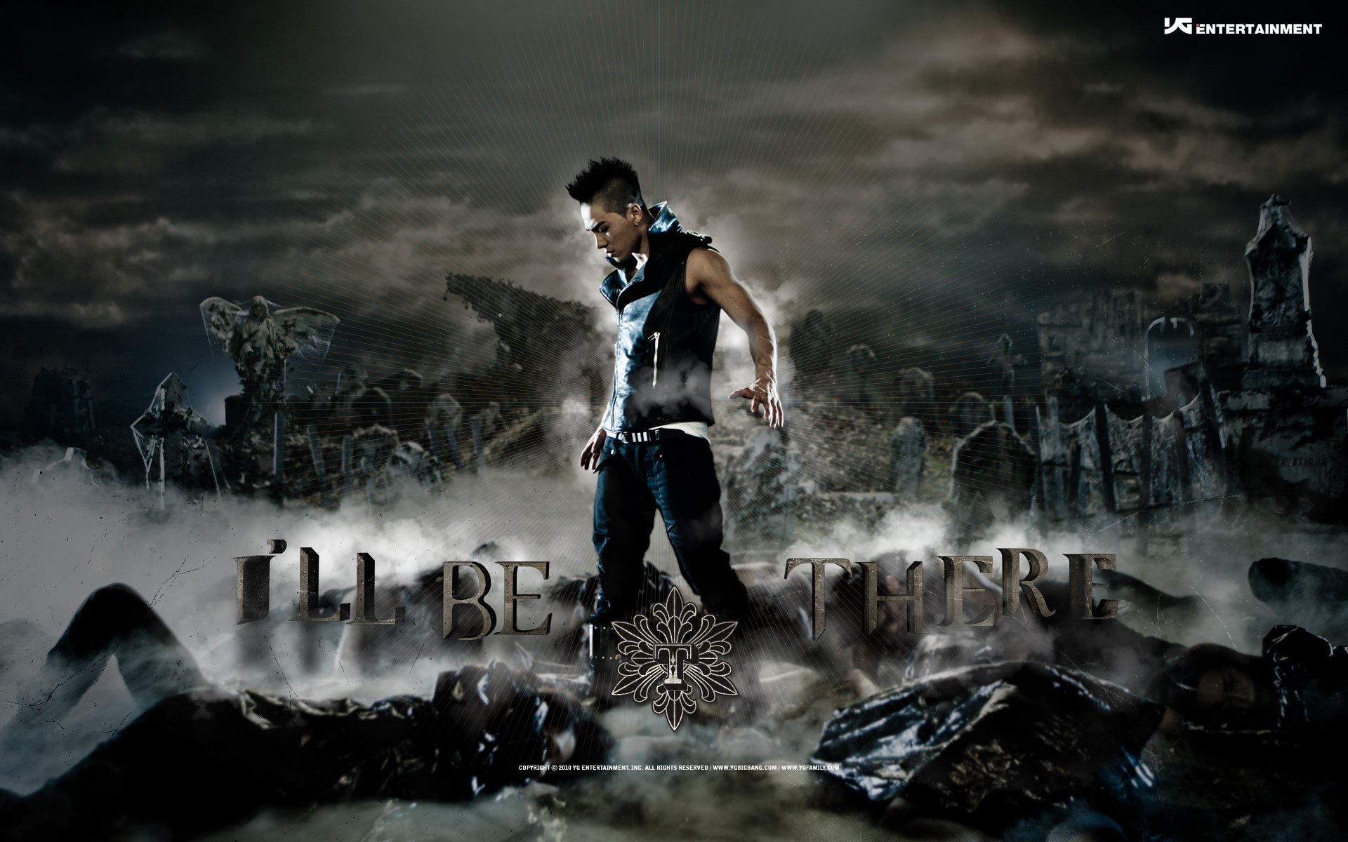 Description: A man walking through a foggy landscape with a cross on his chest and a message below him that reads i believe there.